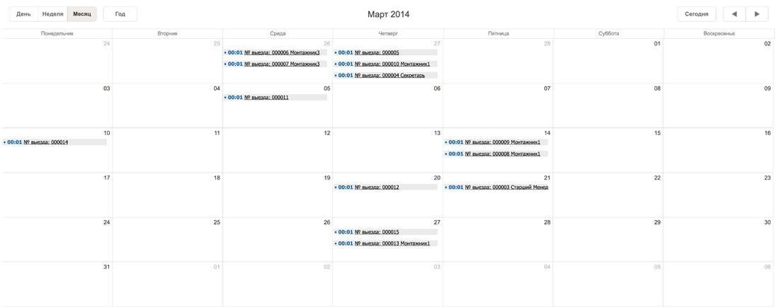 Календарь выездов на монтаж