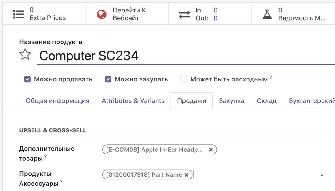 Карточка продукта с доп.продажами